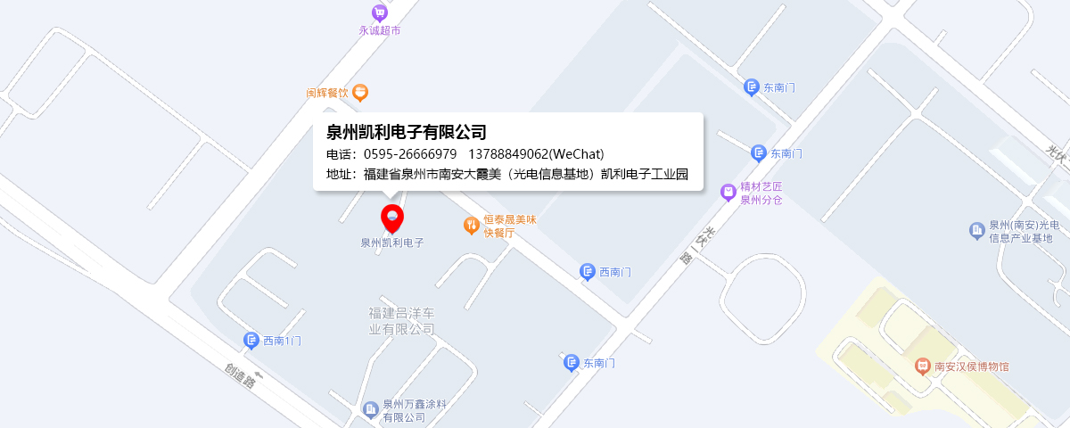 地址:福建省泉州市南安大霞美(光电信息基地)凯利电子工业园